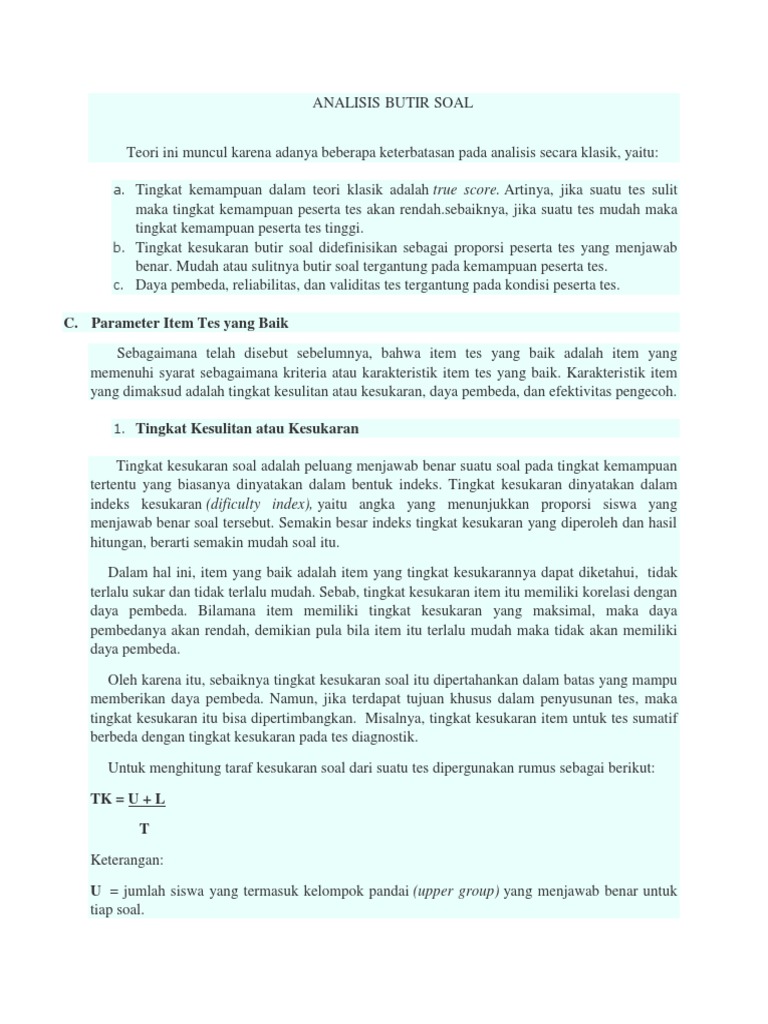 Maybe you would like to learn more about one of these? Tujuan analisis tingkat kesukaran soal. Check spelling or type a new query. We did not find results for:
